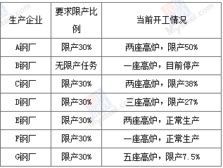 1、高爐調(diào)研樣本選取天津市共7家長(zhǎng)流程鋼廠(chǎng),16座大小高爐,高爐設(shè)計(jì)總產(chǎn)能為2030萬(wàn)噸,目前共有11座高爐正常生產(chǎn),5座高爐停產(chǎn)檢修。根據(jù)《天津市2018—2019年采暖季工業(yè)企業(yè)錯(cuò)峰生產(chǎn)工作方案》,我們對(duì)各鋼鐵企業(yè)限產(chǎn)評(píng)級(jí)和實(shí)際限產(chǎn)情況進(jìn)行調(diào)研: